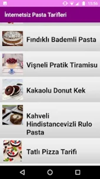 İnternetsiz Pasta Tarifleri เป็นแอปพลิเคชัน Android ที่ให้ผู้ใช้เข้าถึงสูตรเค้กหลากหลายโดยไม่ต้องเชื่อมต่ออินเทอร์เน็ต แอปมีข้อมูลเกี่ยวกับจำนวนเมนู ระยะเวลาเตรียมต้นและเวลาทำอาหารสำหรับแต่ละสูตร แอปเป็นฟรีเพื่อดาวน์โหลดและใช้งาน และนักพัฒนา RedkanApps มีแผนที่จะเพิ่มสูตรอาหารเพิ่มเติมในอนาคต